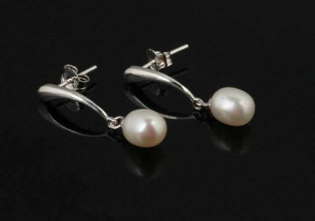 These fashionable sterling silver earrings feature a 6–7mm white freshwater oval pearl that dangles flirtatiously with every movement. Elegant and effortlessly classy, they add a touch of sophistication to any outfit.