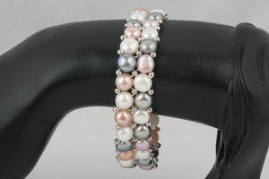 This dazzling and unique multicolor freshwater pearl stretch bracelet, consists of two multicolor rows (white, purple & …