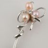 Elegantly crafted in a bowknot design, this sterling silver brooch features 6–7mm rice-shaped freshwater pearls and is beautifully accented with a sparkling central zircon.