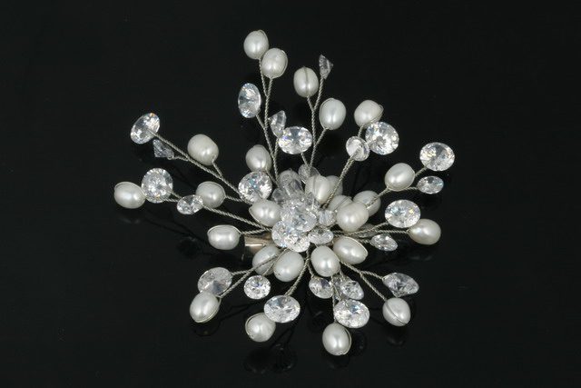 Exquisitely designed in a chandelier style, this elegant brooch is adorned with lustrous 6–7mm white rice-shaped freshwater pearls and accented with shimmering white zircons for a touch of timeless glamour