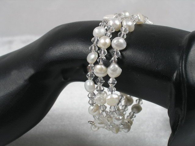 This gorgeous freshwater pearl bracelet, is made of 6-7mm white smooth pearls adorned with crystals. These stunning pe…