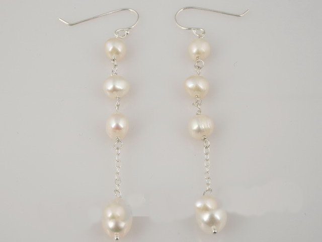 Add pizzazz to any outfit—casual or dressy—with these delightful earrings. Featuring four hand-matched exotic white 5–6mm freshwater pearls paired with 7–8mm rice pearls, they swing gracefully from two inches of sterling silver chain. Finished with 925 sterling silver ear hooks, these earrings combine elegance and movement beautifully.