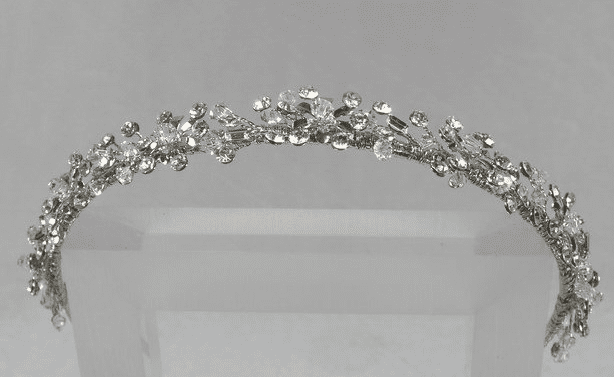 This exquisite bouquet-design tiara features a silver-toned headpiece encrusted with rhinestone beads