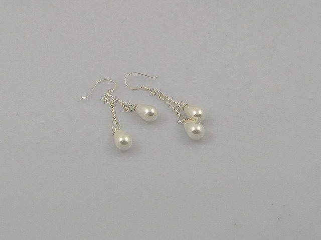 Delicate and elegant are these beautiful 6-9mm white tear-drop shell pearl earrings with sterling silver fittings. Just superb. Gift box included.
