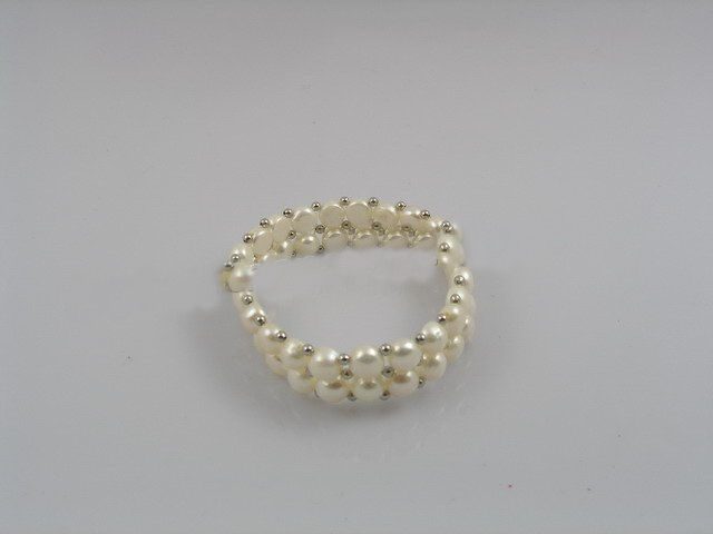 This is a dazzling and unique freshwater pearl stretch bracelet consisting of 7mm button shaped cultured freshwater pearls that are strung with silver plated spacer beads on a durable stretch cord. Super comfortable and easy to put on or take off.